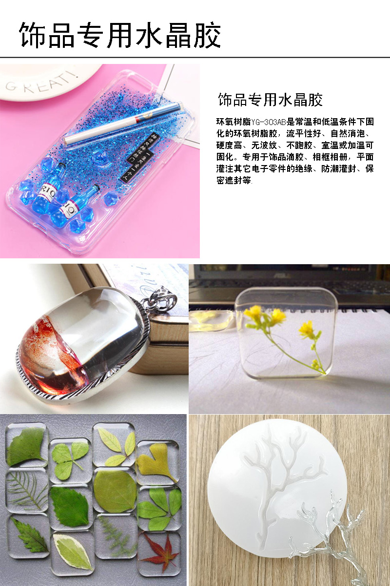 水晶膠工藝簡(jiǎn)單:水晶膠又稱水晶滴膠、假水晶, 水晶膠又分為聚氨酯PU膠、環(huán)氧樹脂AB膠兩大類,環(huán)氧樹脂型價(jià)格相對(duì)低廉應(yīng)用廣泛,但耐黃變性與韌性相對(duì)要差,而聚胺脂PU膠有抗紫外線功能,可保證三年不黃變,不會(huì)隨著時(shí)間推移而變硬具有很好的韌性適用于車輛標(biāo)牌等室外使用較多的高端產(chǎn)品,但因其價(jià)格較高而使用較少。普通環(huán)氧水晶膠是由高純度環(huán)氧樹脂、固化劑及其他改質(zhì)組成。其固化產(chǎn)物具有耐水、耐化學(xué)腐蝕、晶瑩剔透之特點(diǎn)。